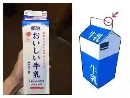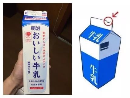 在日本超市购买纯牛奶(生鲜乳制品一般都是盒装),如果仔细查看,会发现在纸盒上在撕开口的另一端有一个直径大约0.5厘米的半圆形凹槽。这个凹槽并不大,从视觉上来说可能不太容易发现,但用手指触摸,却可以轻易地用触觉切实地感知到它的存在。