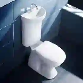 抽水马桶的储水罐上有洗手池,注水的同时可以洗手,既节省水资源也节省使用者的时间;