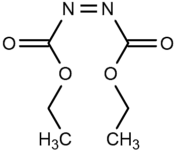 这个长得像无头怪的分子的全名叫做偶氮二甲酸二乙酯,它的英文缩写是DEAD——挂掉了。它不光名字很可怕,而且真的有毒哦。这种橙黄色的液体还很容易爆炸,不过它是一种重要的化学制剂。