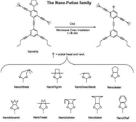 Chanteau, S. H.; Tour, J. M. (2003). "Synthesis of AnthropomorphicMolecules: The NanoPutians". TheJournal of Organic Chemistry 68 (23): 8750–8766.