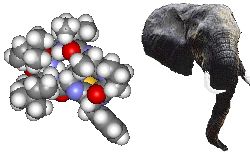 这个分子长得像大象的脸,但除此之外它和大象就没有共同点了。它是从澳大利亚大堡礁的一种海鞘身上提取出来的,有抗肿瘤的功效。