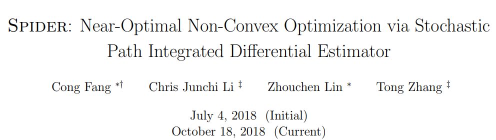 最近北京大学 ZERO 实验室与腾讯 AI Lab 提出一种新的技术:基于随机路径积分的差分估计子(SPIDER),该技术能够以更低的计算复杂度追踪许多我们感兴趣的量。该研究工作被接收为NeurIPS 2018 SPOTLIGHT(4.08%) 论文。