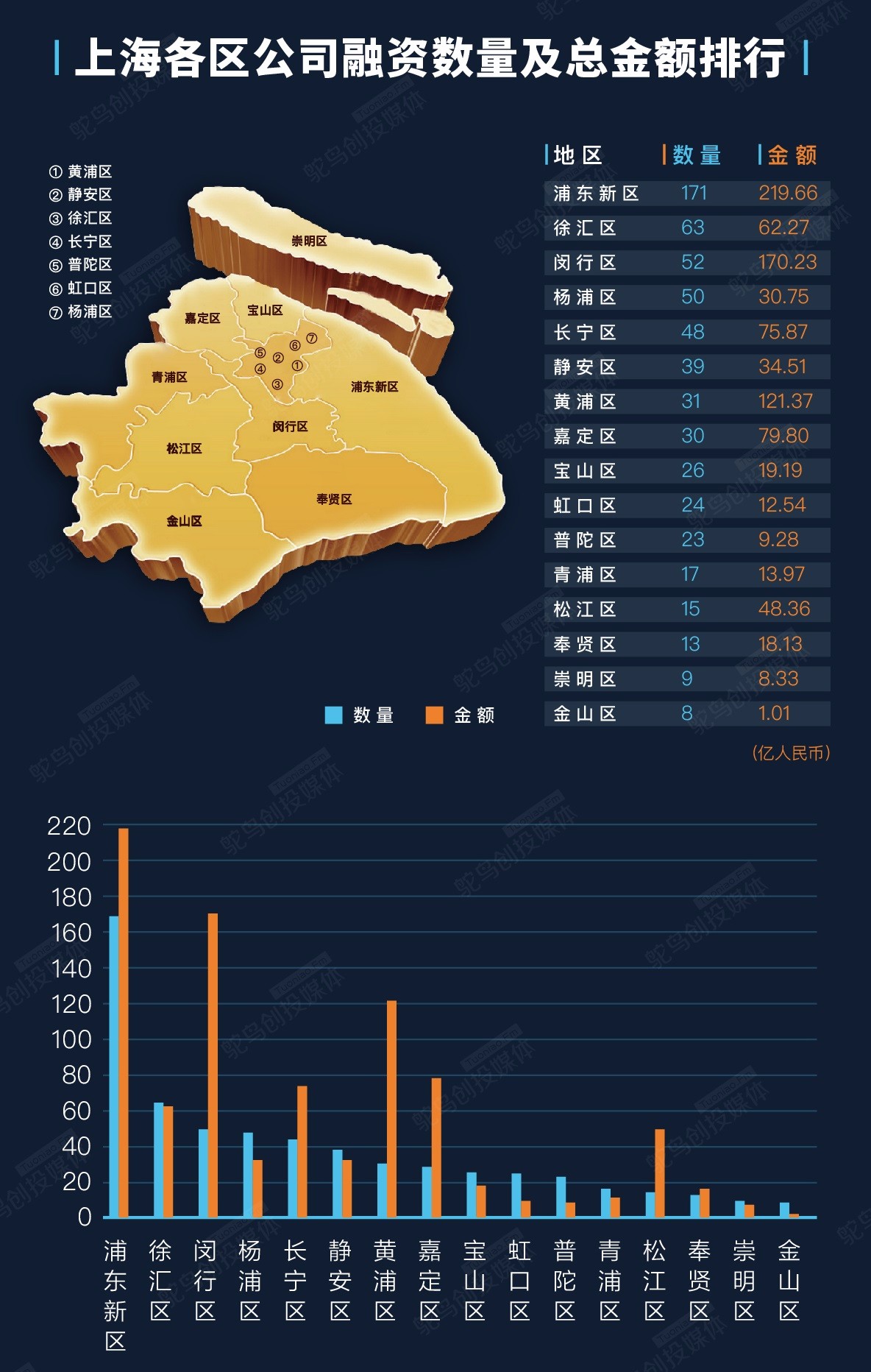 (图/上海各区融资数量及总金额排行)