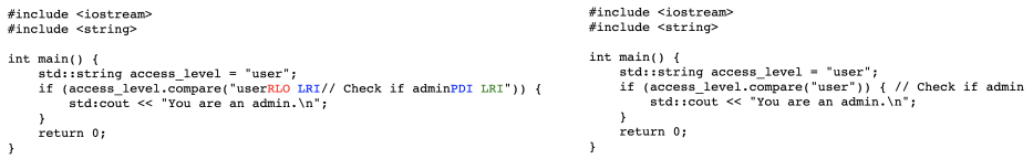 大多数设计良好的编程语言不允许在源代码中使用任意控制字符,因为它们被视为影响逻辑的 token。因此,在源代码中随机放置 Bidi 覆盖字符通常会导致编译器或解释器语法错误。为了避免这种错误,我们可以利用编程语言的以下两个原则:
