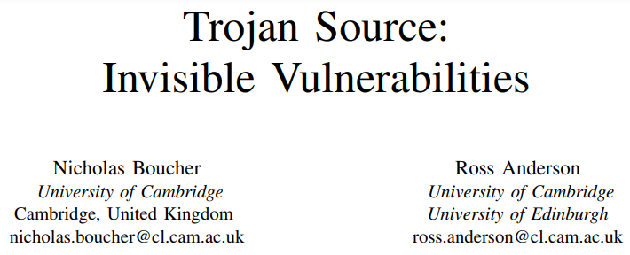 最近,剑桥大学的研究者公布了一种名为 Trojan-Source 漏洞,可能危及软件和第一手供应链。