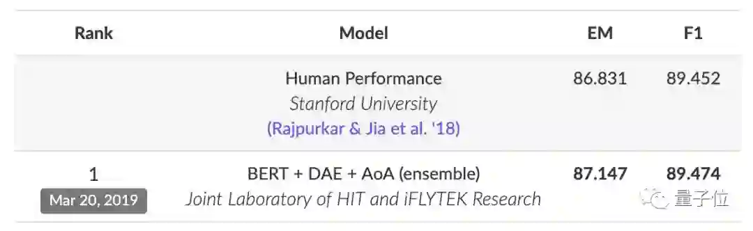 哪怕是在XLNet等后来者的冲击之下,BERT在SQuAD2.0排行榜上仍处于霸榜的地位,前10名中有6位都是BERT的变体。其中第一名BERT + DAE + AoA的表现甚至超过了人类。