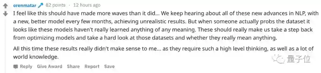 我们每隔几个月就会听到有关NLP的新进展,更新、更好的模型层出不穷。但当有人实际用数据集测试时,会发现这些模型并没有真正学习到什么。优化模型的竞赛该放缓脚步了,我们更应该仔细研究研究数据集,看看它们是否真的有意义。