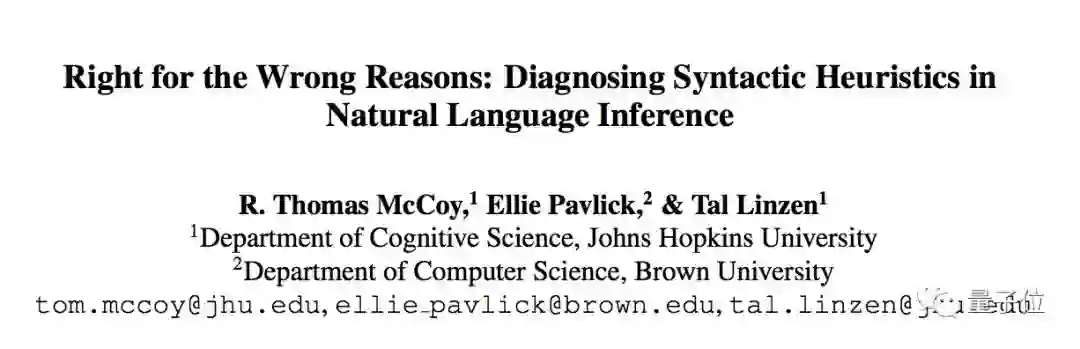 这篇论文里BERT是在多类型语言推理数据集 (MNLI) 上训练的,而测试集则是研究团队自制的HANS数据集: