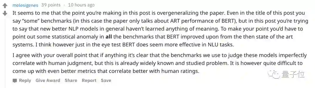 作者还说,他并不否认BERT和其他新模型的价值,但是并不相信一些Benchmark。