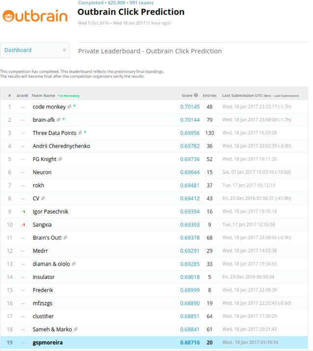 Kaggle的Outbrain Click预测最终成绩