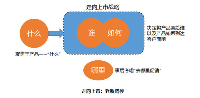 走向上市的老派路径先聚焦于产品是什么,然后决定将产品卖给谁以及产品如何到达客户面前,事后考虑去哪里促销。
