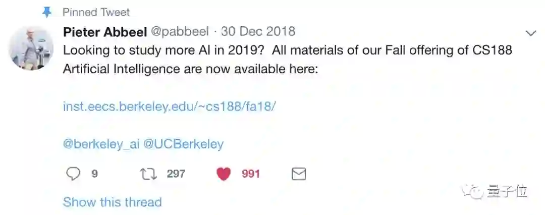 伯克利教授Pieter Abbeel在推特上推荐没几天,点赞即将破千了。
