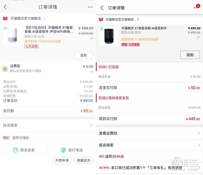 然而通过仔细分析可以发现,事实并没有表面这么乐观。首先阿里面对的是产能不足。按照一个月生产二三十万台产品来算,这70万订单中剩下的30万订单就算本月完成,那么还有22万台的订单需要继续延后。通过与智东西智能音箱社群人员沟通发现,购买用户的发货日期大都为11月30日前和12月31日前,“这不等于是买期货嘛”,一家智能音箱高管调侃到。