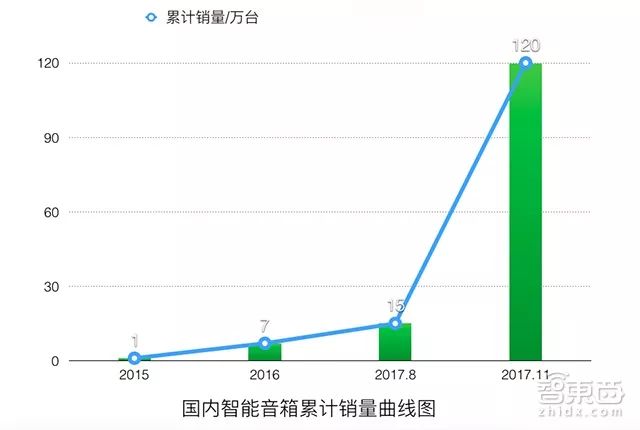 而反观国内智能音箱的发展状况,尽管在2015年(8月)就开始起步,但这一年的销量(四个月)仅有1万台,经过2016年、2017年的发展,到2017年8月刚好是智能音箱在国内2周年,而此时我们的累计销量只有15万台,不及亚马逊第一年的1/5。