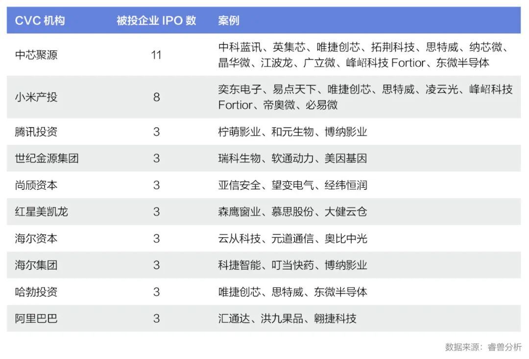 本季度,国内共9家CVC机构被投企业IPO数量超过2家。