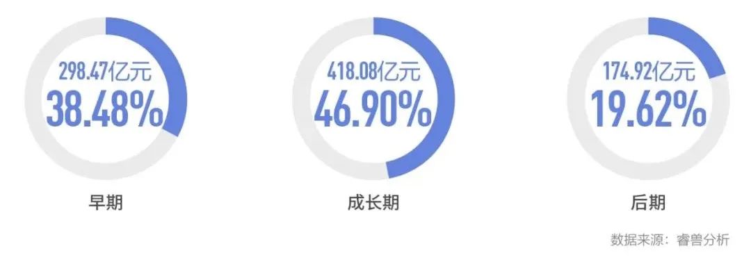 本季度CVC投资事件按阶段划分,分布最多在早期,共171个,占比67.59%;其次是成长期,发生63个,占比24.90%;后期共19个,占比7.51%。已披露融资金额方面,早期298.47亿元,占比38.48%;成长期418.08亿元,占比46.90%;后期174.92亿元,占比19.62%。