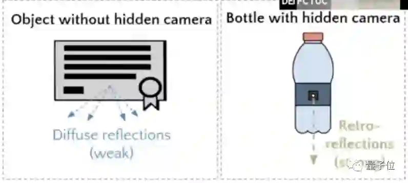 我们都知道,相比普通物体的“散射”,光线打在镜头这类物体上会形成强烈的逆反射,就像这样: