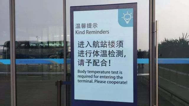 武汉天河机场航站楼入口体温检测提示