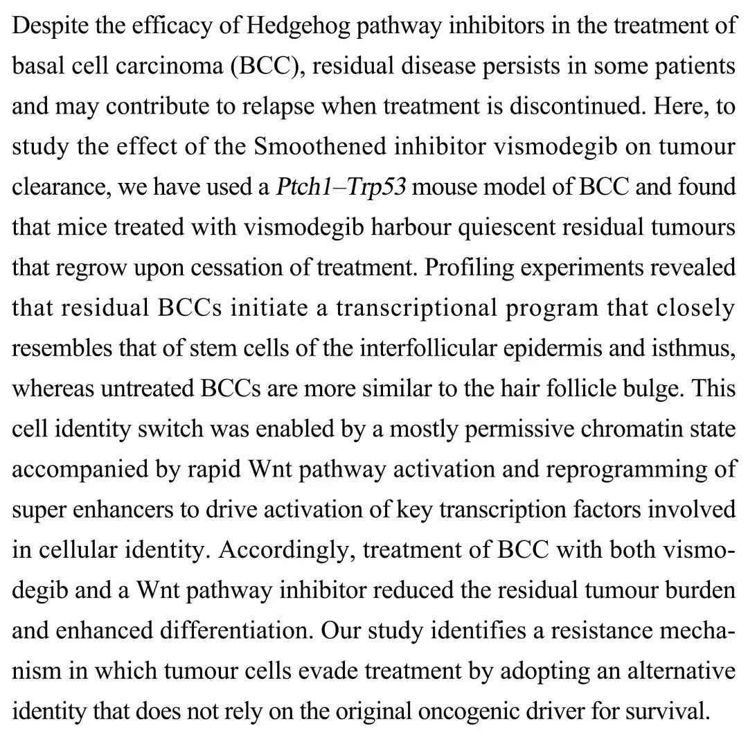 细胞身份转换允许残留的BCC在Hedgehog通路抑制中存活