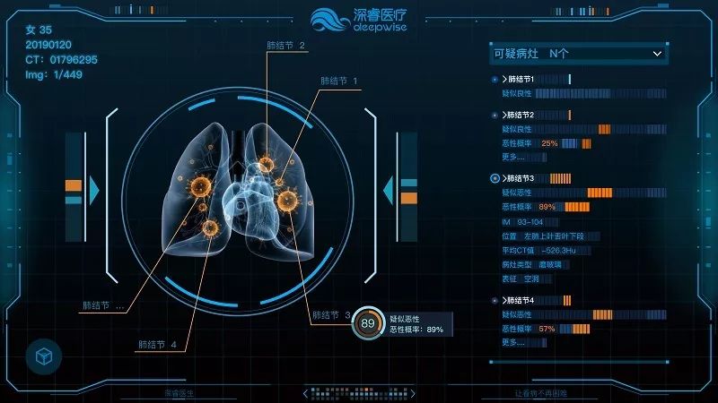 以肺结节筛查为例,在传统的治疗过程,对于肺结节良恶性的诊断一直是个难题,深睿医疗和各大医院以及相关医疗机构合作,通过不断的海量数据深度学习分析和医生诊断反馈,已经可以显著提高对肺结节良恶性判断的准确率。