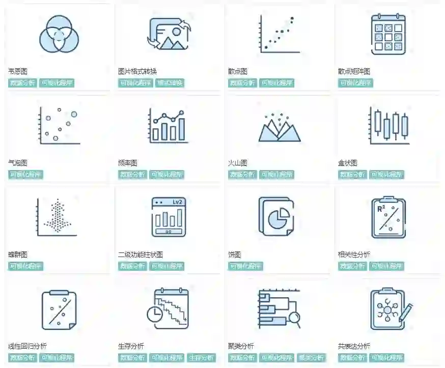 成功登陆后即可免费使用应用市场中所有分析模块,进行在线绘图、图片格式转化、基础文件整合以及丰富的统计分析。