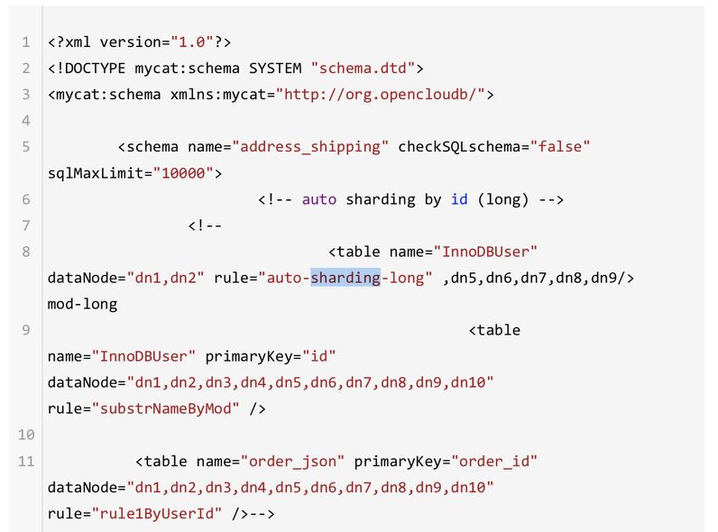 MyCat是如何定义或者决定一条SQL语句的执行方式,或者如何决定去哪里取数据及写入到哪里的?解决这样的问题是需要某一个地方来存储的,它的做法是——schema.xml配置文件,竟然用配置文件来搞定。