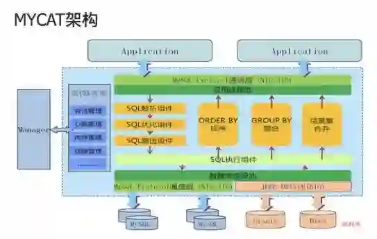 MyCat的实现架构大概如上图所示,其实如果只看图的话,这样的架构真是完美无缺,自动分片、自动聚合、分布均衡都实现的非常好。