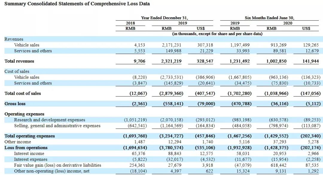 小鹏汽车2019全年实现营收23.2亿元人民币,2020上半年,小鹏实现总营收10亿元人民币,在疫情影响下同比下降18.6%;