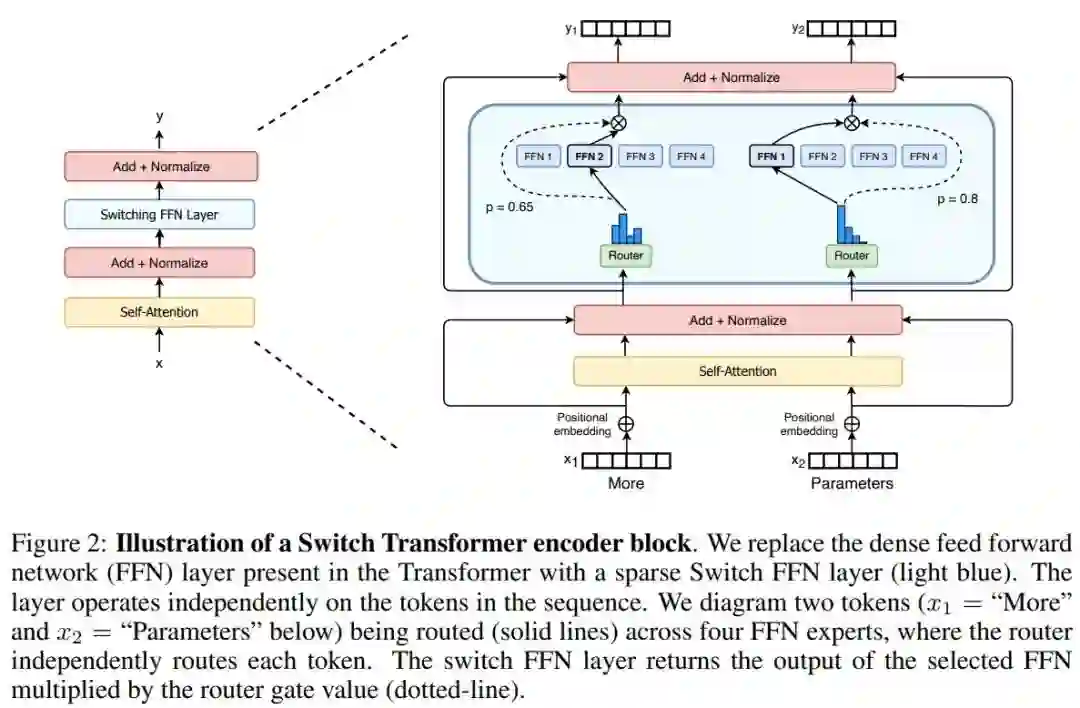 ,结果得到一个稀疏激活模型——虽然参数量惊人,但计算成本恒定。