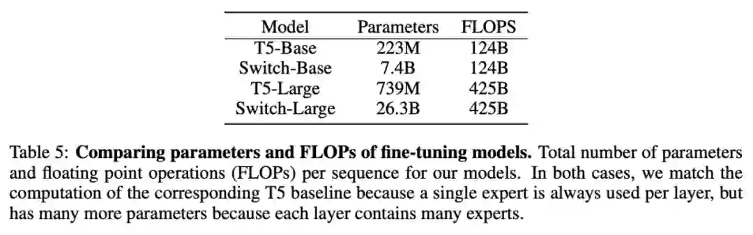 这里使用的基线方法是经过高度调参、具备 223M 参数的 T5-Base 和具备 739M 参数的 T5-Large 模型。针对这两个模型,该研究作者设计了具备更多参数的 FLOP-matched Switch Transformer。