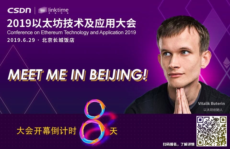 2019以太坊技术及应用大会特邀以太坊创始人V神与众多海内外知名技术专家齐聚北京,聚焦区块链技术,把握时代机遇,深耕行业应用,共话以太坊2.0新生态。即刻扫码,享优惠票价。
