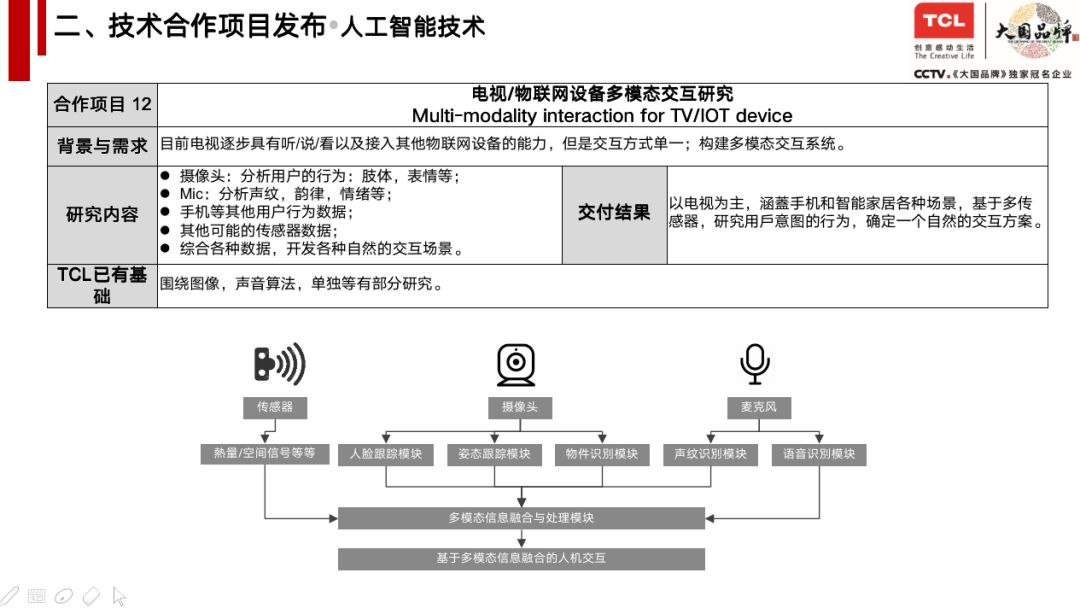 这次,TCL 在近日举行的技术合作开放大会上,将 AI 技术的布局再次扩大, 面向全球发布了 13 个技术合作项目,其中就包括 7 项人工智能技术,另外 6 项为新型显示技术。本文将重点介绍 AI 相关技术项目。