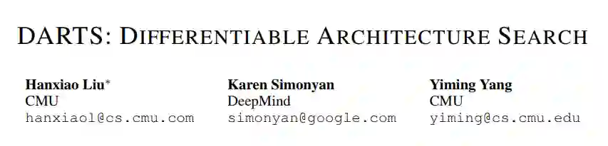 推荐理由:DARTS是DeepMind和CMU的论文,被ICLR2019接受。本文的核心思想是通过以可微的方式进行结构搜索。与传统的在离散的和不可微的搜索空间上采用进化或强化学习搜索结构的方法不同,本文的方法是基于将结构表示的松弛(relaxation),允许使用梯度下降高效搜索架构。在CIFAR-10,ImageNet,Penn Treebank和WikiText-2上进行了大量实验,表明本文的算法擅长于发现用于图像分类的高性能卷积结构和用于语言建模的循环神经网络结构,同时比现有技术的非微分搜索技术要快几个数量级。