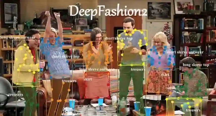 使用的数据集:DeepFashion2数据集,包含来自商业购物商店和消费者的13种流行服装类别,491K张不同的图像