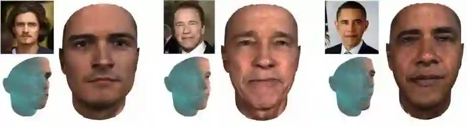TLDR:论文提出的深度拟合方法可以从一张图像中重建出高质量的纹理和几何结构,具有精确的身份恢复能力。论文中重建的插图均由一个长度为700个浮点数向量表示,并且没有经过任何特殊效果渲染。(描述纹理由模型重建,而且没有直接从图像中获取任何特征)