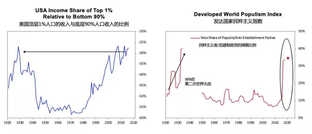 我们看看这样典型的周期和20世纪30年代大萧条的周期是类似的,那时候出现了两极化,在美国和欧洲我们可以看到政治的两极化产生了,在大选当中反映出来,这会影响到后续经济政策。