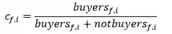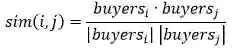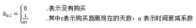 记buyersi表示用户购买商品的向量,记buyersi=(…,bu,i,…) u∈U为,其中U表示全库用户集合,bu,i表示用户u对商品i的得分,定义如下: