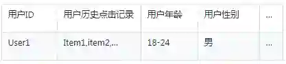 其中用户特征可以是用户历史购买的商品ID,也可以是用户属性特征,例如:年龄、性别、居住地等等。