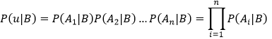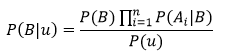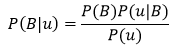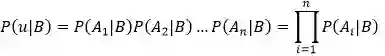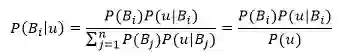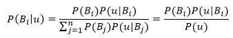 上述公式中,P(Bi|u)表示的含义是在发生了事件u的情况下,发生事件Bi的概率,P(Bi)表示事件Bi的发生概率,P(u)表示事件u的发生概率。
