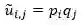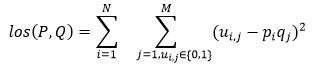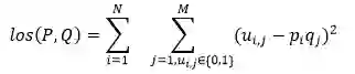 其中ui,j表示矩阵U的第i行第j列元素,pi表示矩阵P的第i行,qj表示矩阵Q的第j列,