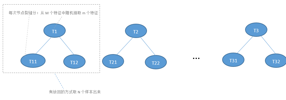 Step1:用M表示数据总特征维度,N表示样本数量,m表示特征抽样维度。