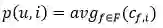 给定一个用户u和一个商品i,通过上述方法生成用户u的特征集合记为F. 我们用该用户特征集合下,所有对i有效特征的均值衡量用户u对该物品的购买可能性p(u,i):
