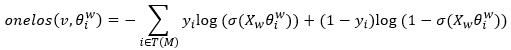 损失函数的构造,通过交叉熵的构造,以一个样本例,样本的输入词向量求和为XW,输入词为M,该词对应的哈夫曼树路径为T(M),那么该样本的损失函数如下: