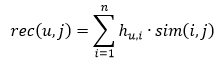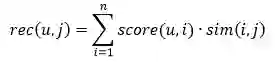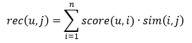 计算用户u对某一物品的偏好,记用户u对物品i的评分为score(u,i),用户u对物品i的协同过滤得分为rec(u,j)。
