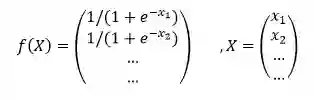 向量X是模型输入变量向量,wi是Li-1层与Li的连接权重矩阵,bi是Li的偏置向量。函数f是一个激活函数,目前业界常用的激活函数有relu、sigmod、tanh,传统BP神经网络函数一般采用sigmod函数,如果采用该函数,那么: