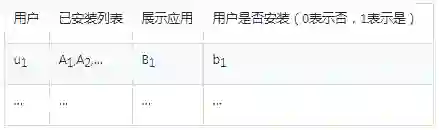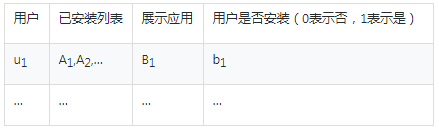 首先收集历史的用户在应用商店中应用展示记录,并且关联用户在展示时刻的安装列表,数据格式如下: