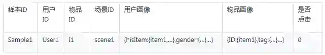 收集历史曝光点击数据,收集的数据维度包括:用户ID,物品ID,场景ID,是否点击。然后关联用户画像和物品画像得到模型的训练样本数据。