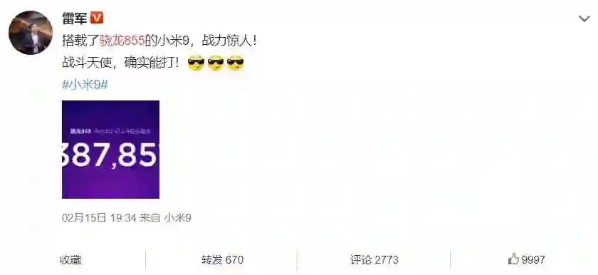 其实相信大多数观众看到小米 9 发布会上所说的参数都是无感的,因为我们已经从各大自媒体(例如雷科技)的资讯文章中对此有所了解,小米 9 用什么配置,安兔兔跑分又是多少,和友商相比超过多少,我们早就知道了。