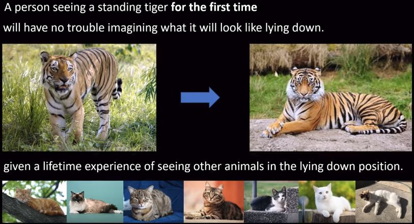 如果你没看到过老虎坐着的样子,但是你看到过其他小动物坐着的样子,你很自然地联想到老虎坐着应该是什么样子(如下图片所示)。