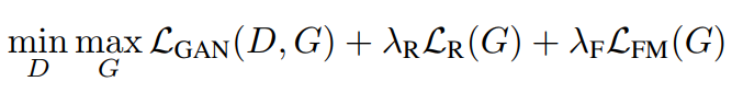 其中3项分别表示GAN的loss, 图像本身构图的loss, 以及特征匹配的loss 。